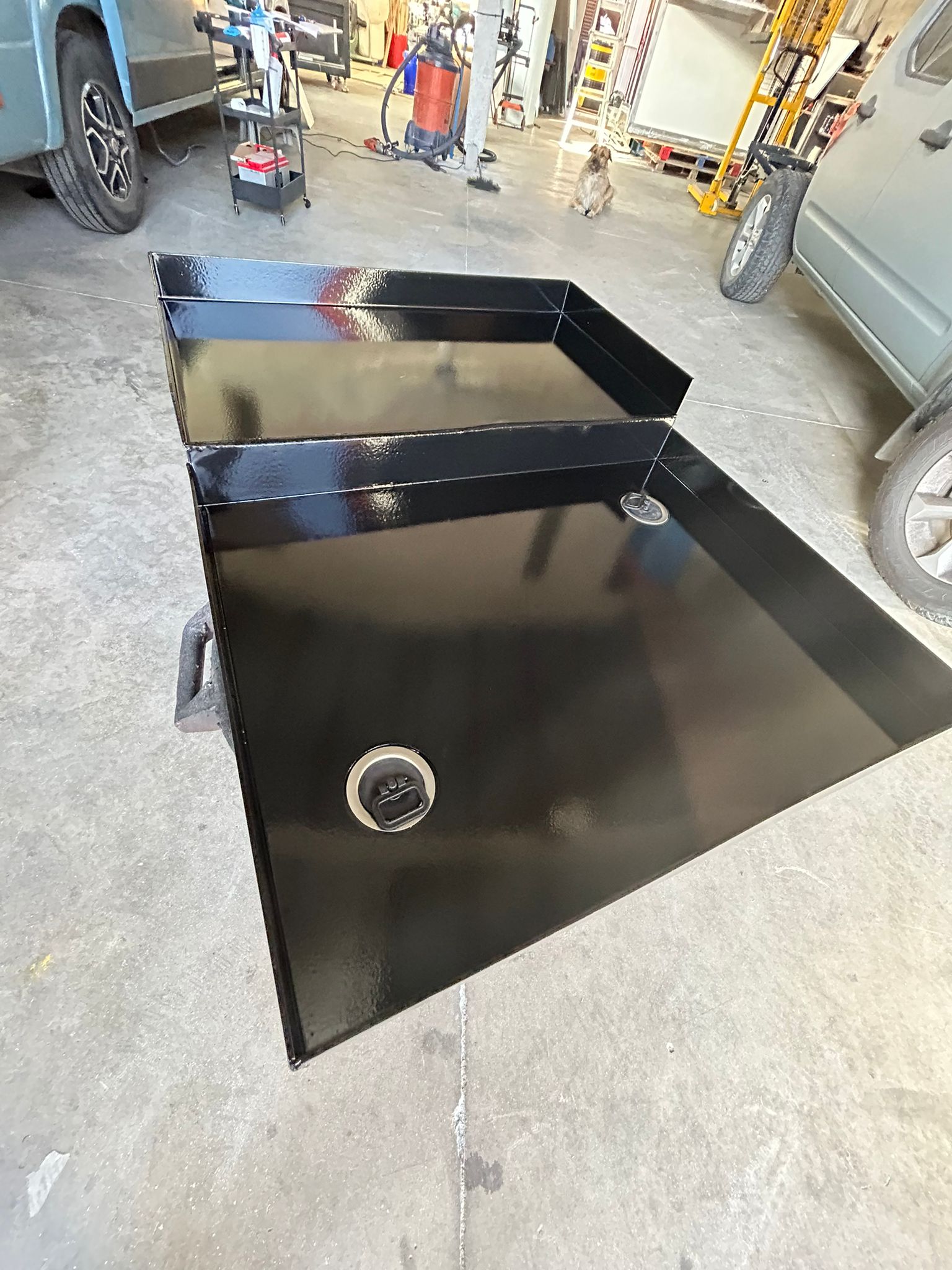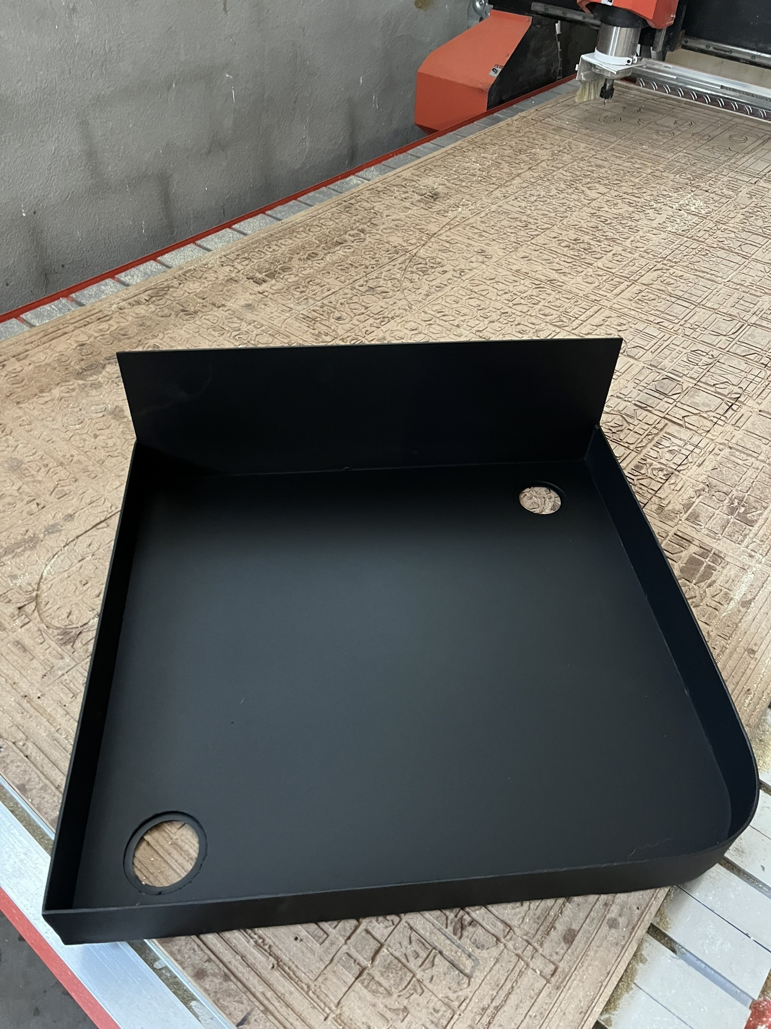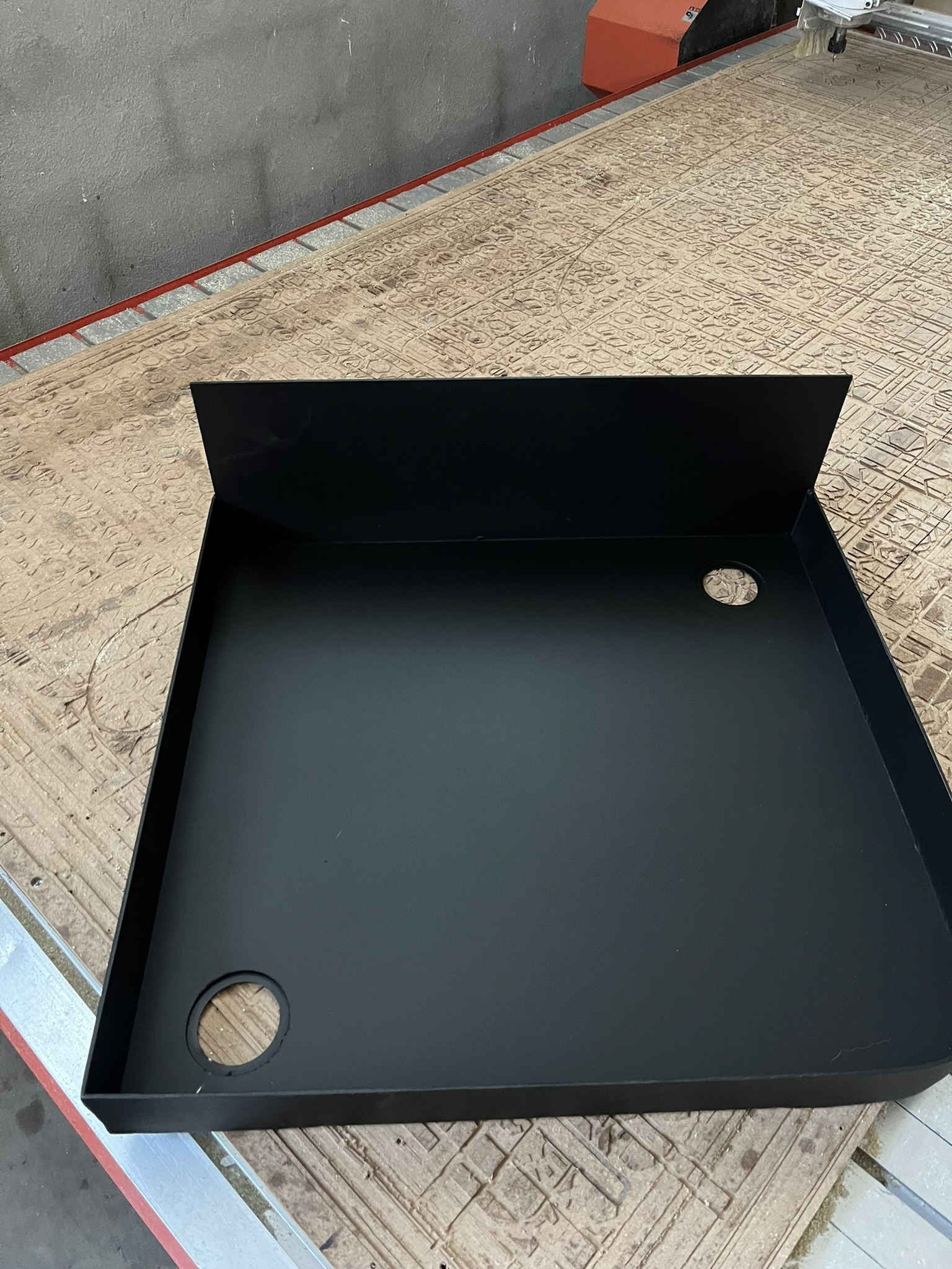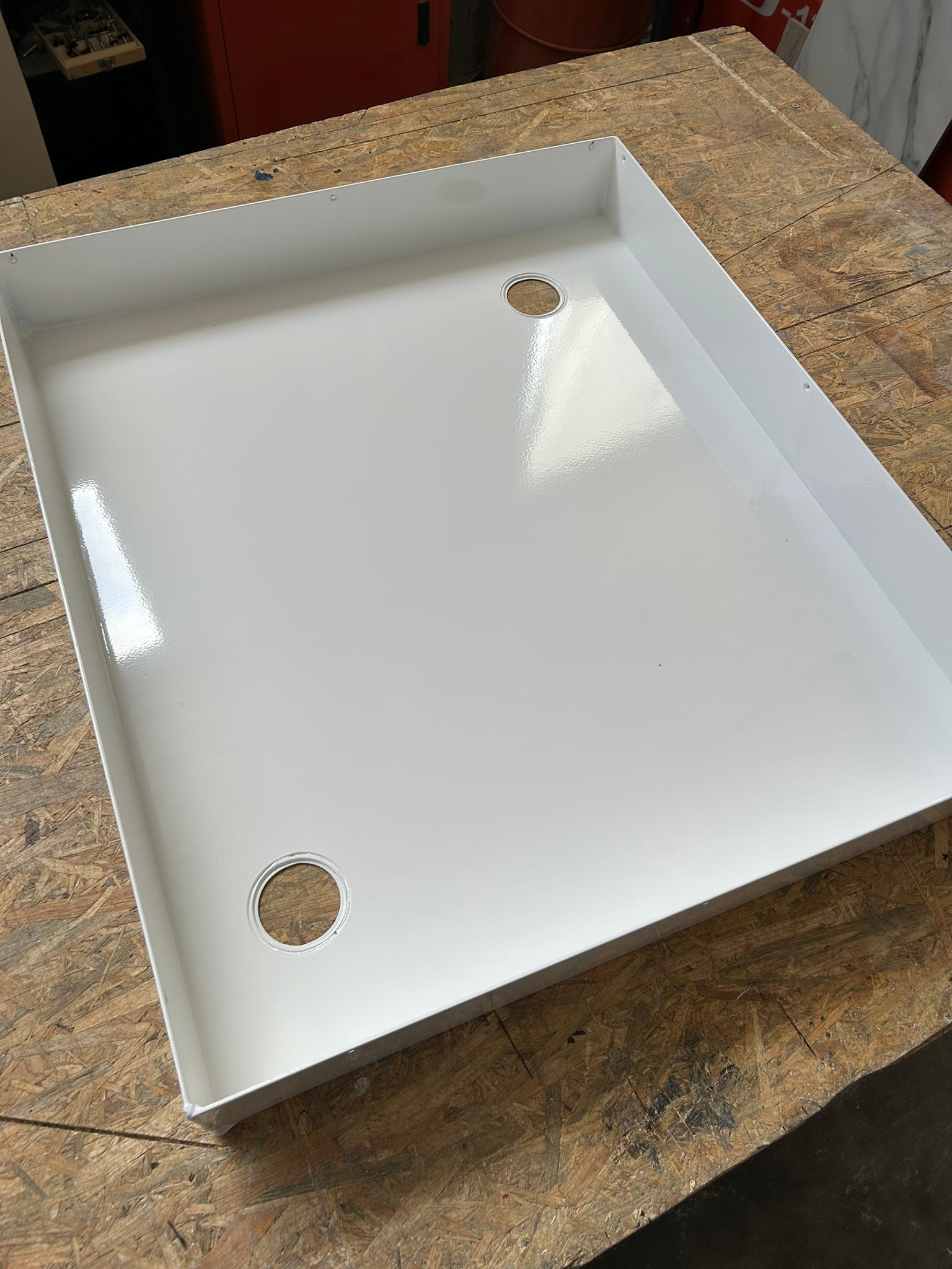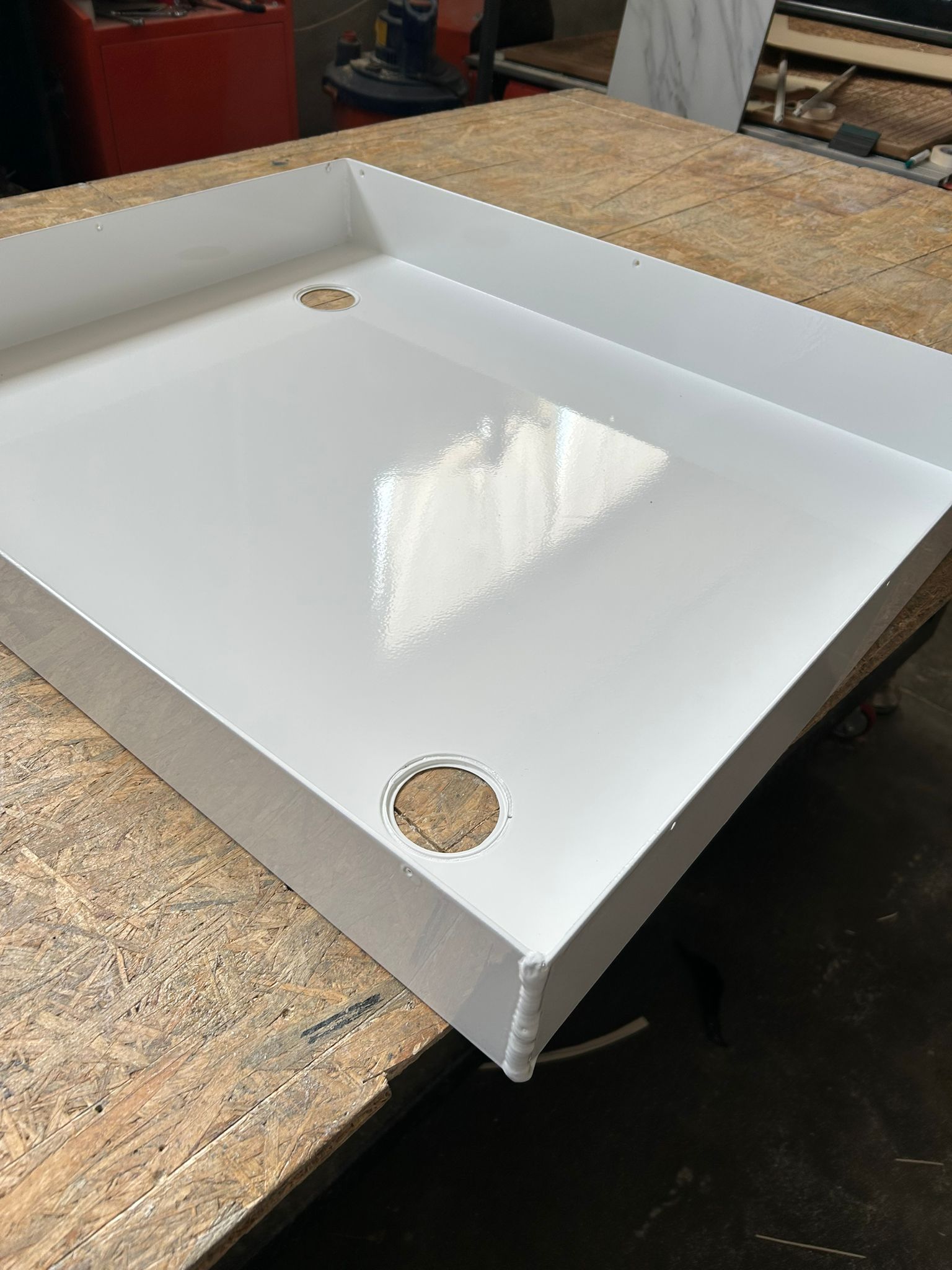 Fabricados en aluminio de 3mm,  soldados en Tig, disponen de dos orificios de salida para garantizar una correcta evacuación de las aguas.. Fabricamos cualquier medida y formado. Todos nuestros platos del ducha están fabricados  en una sola pieza mediante corte CNC plegado y con soldadura Tig, y lacado al horno, asegurando su durabilidad y estanqueidad.