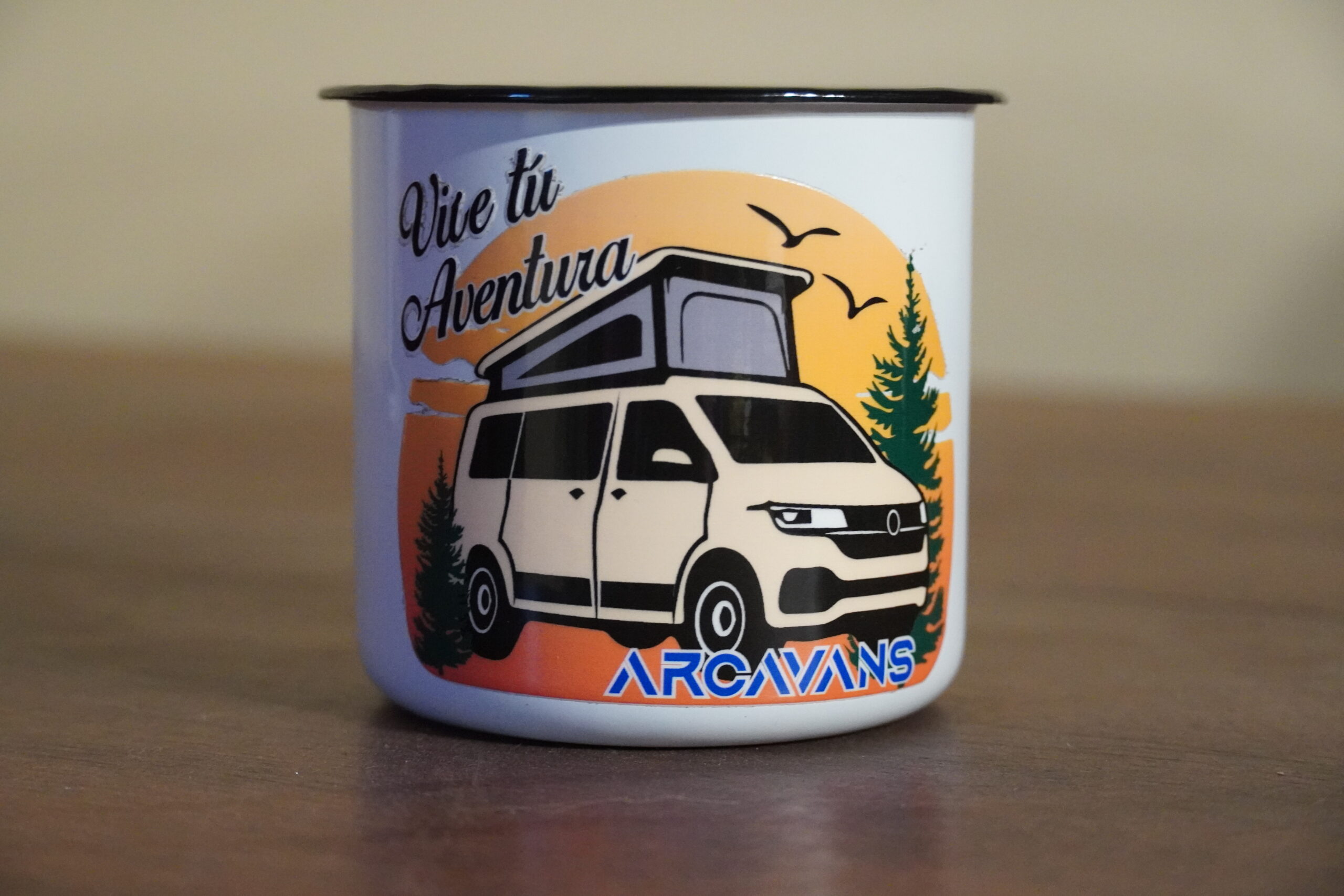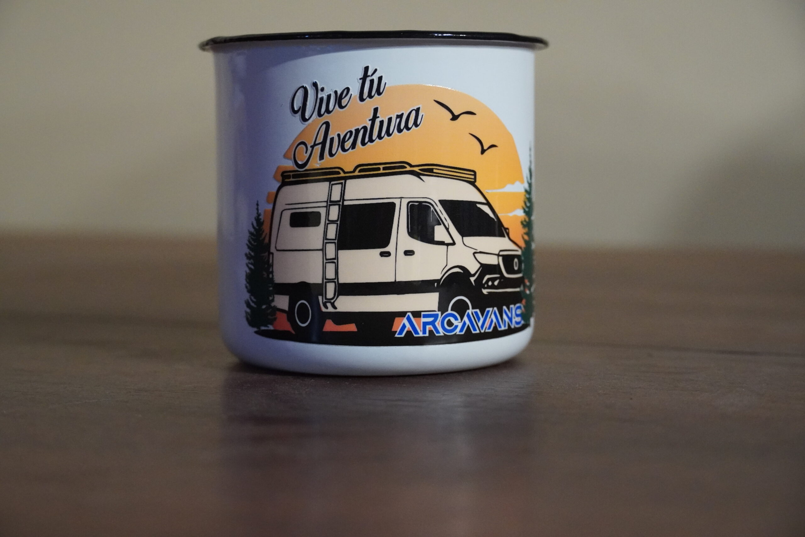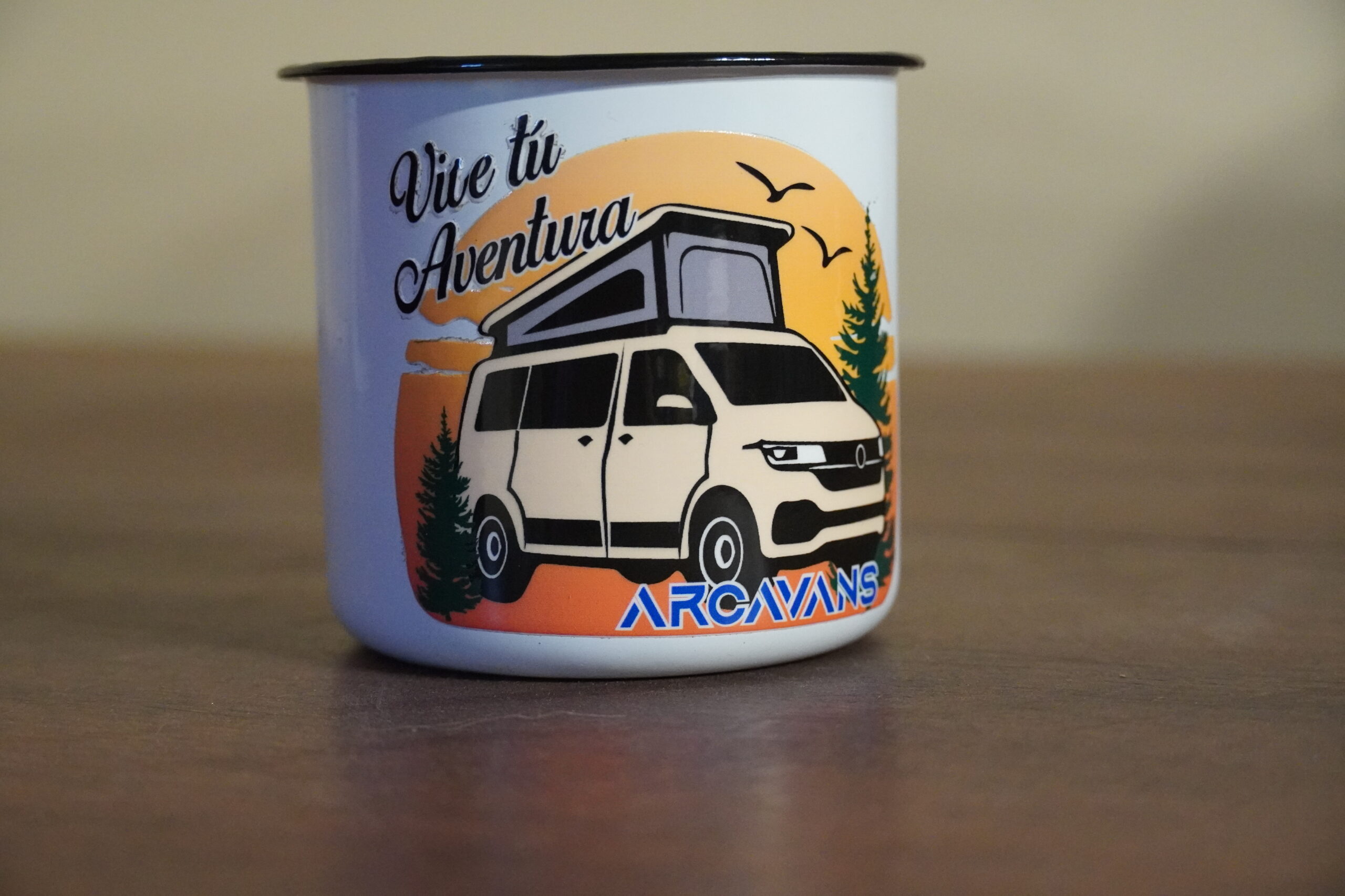 Taza metálica de 380ml de capacidad con diseño vintage.
