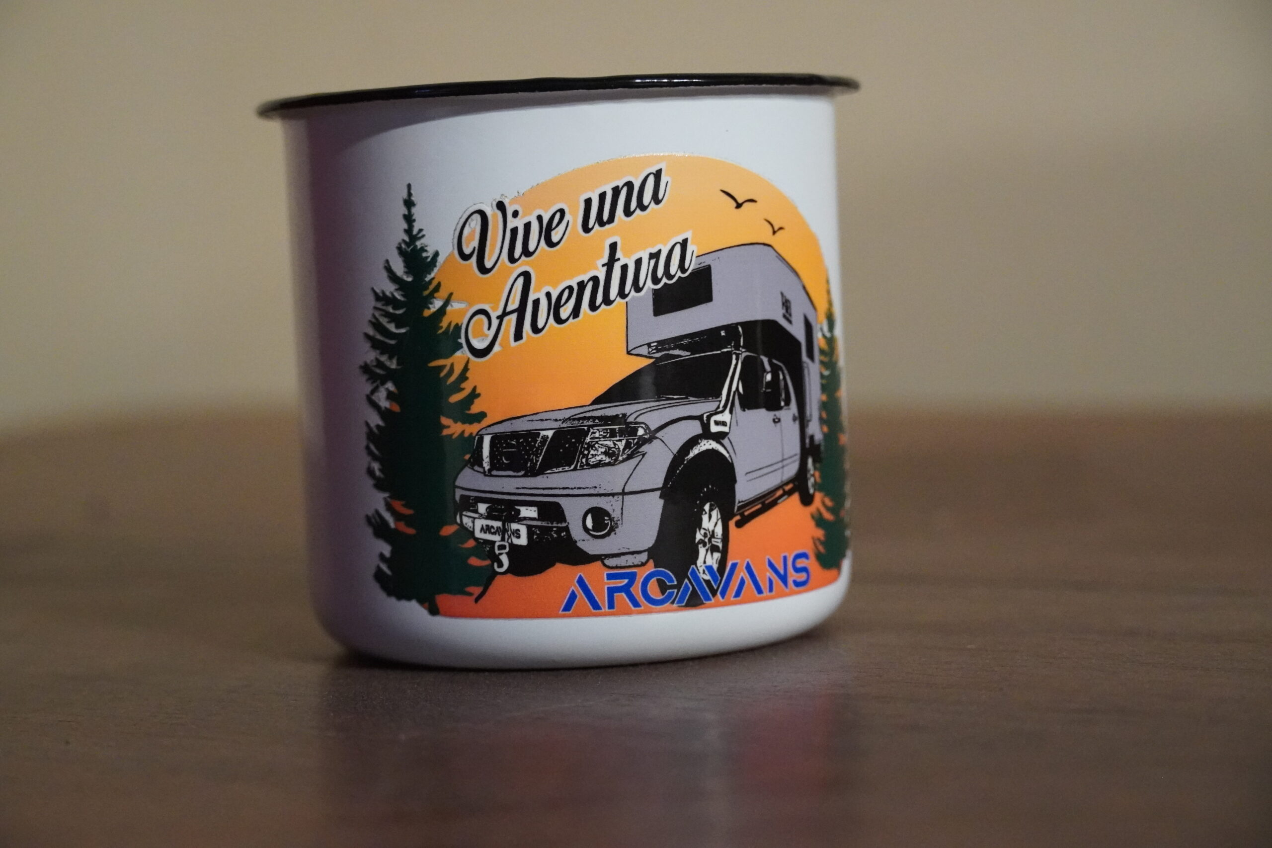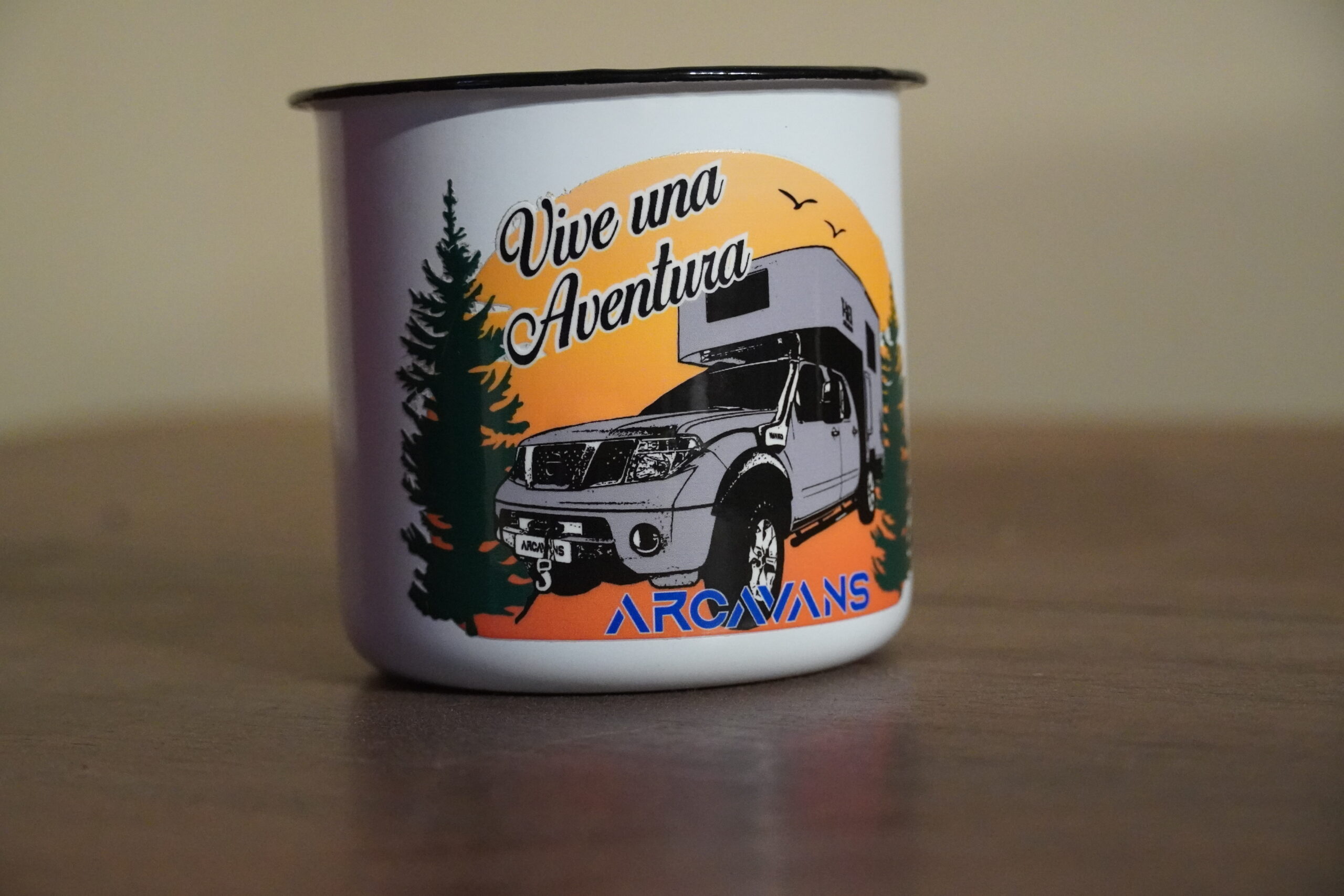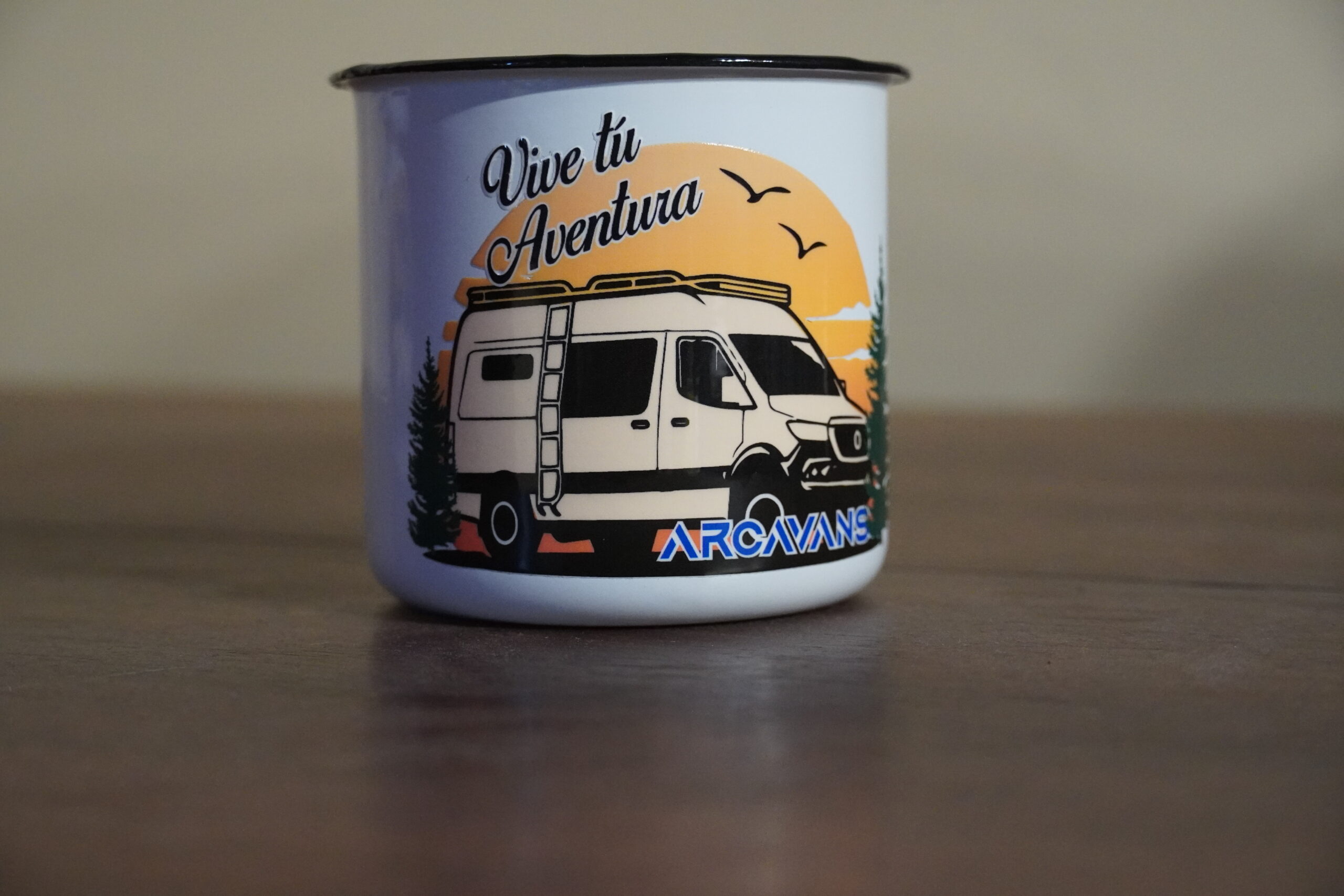 Taza metálica de 380ml de capacidad con diseño vintage.
