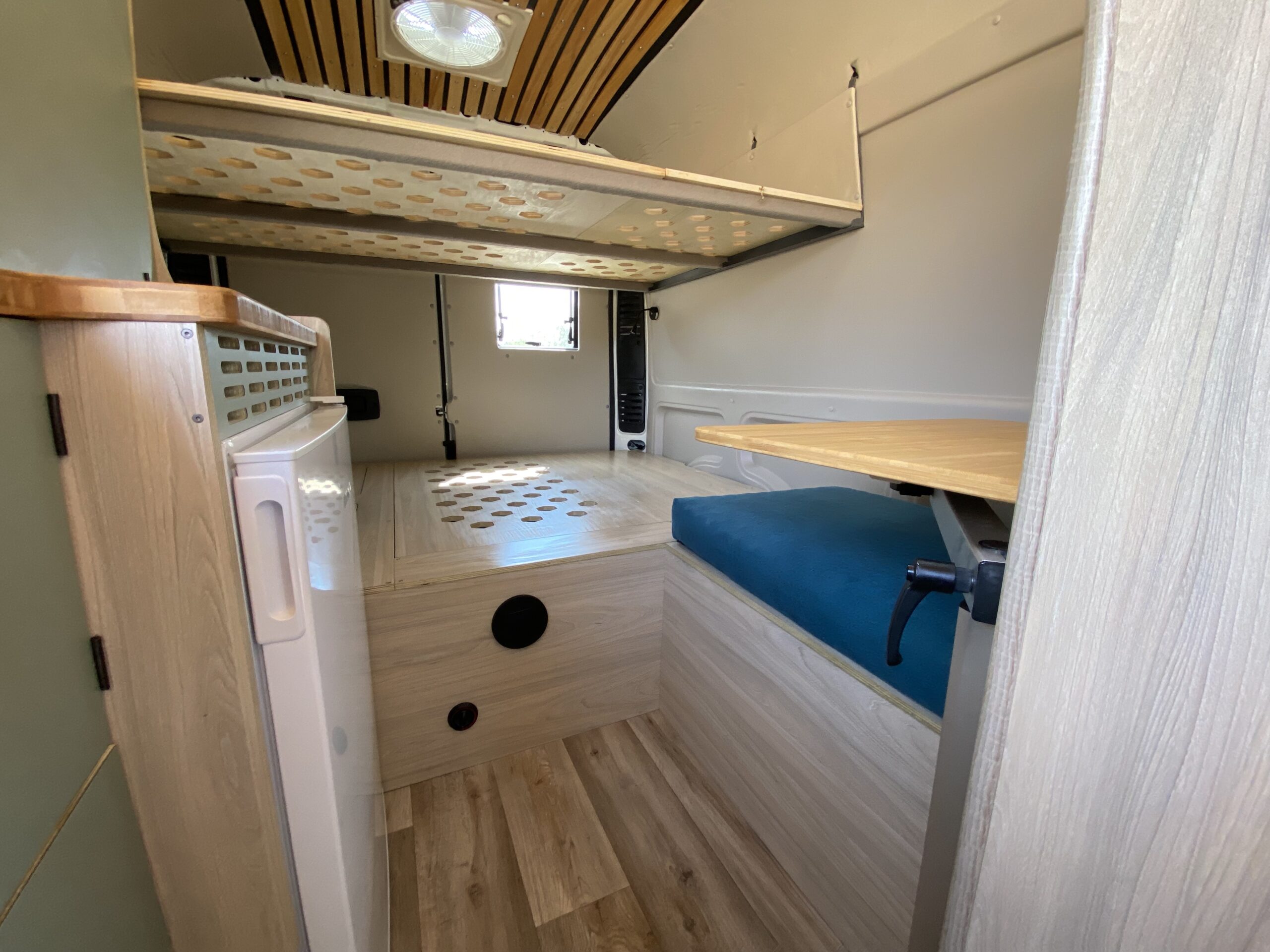 - Suelo de madera contrachapado cubierto con material vinílico antideslizante.
